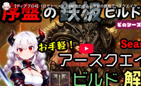 動画内ではバーバリアンでトーメント4まで攻略可能な強力なビルドの解説となっています。